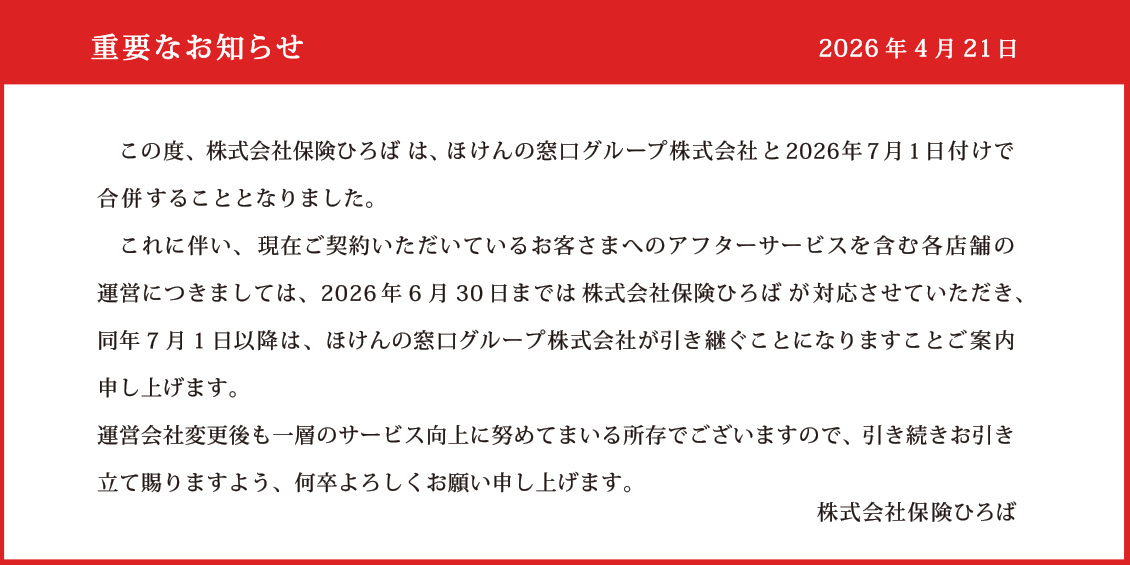 保険のご相談からご契約、その後のサポートまで、お任せください。